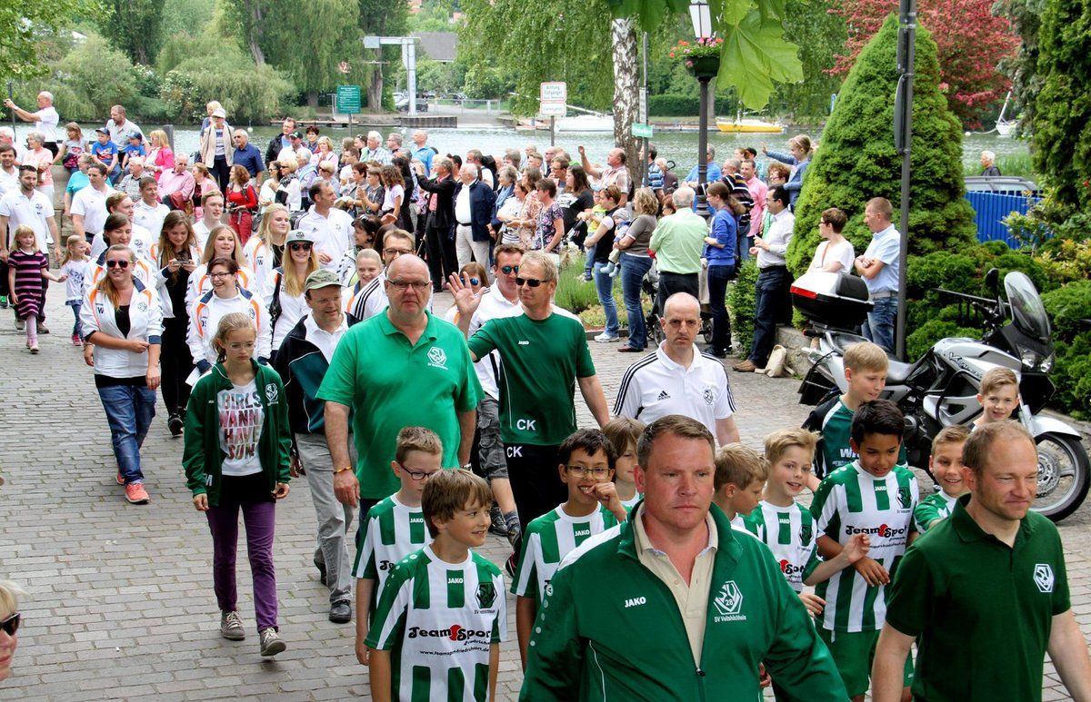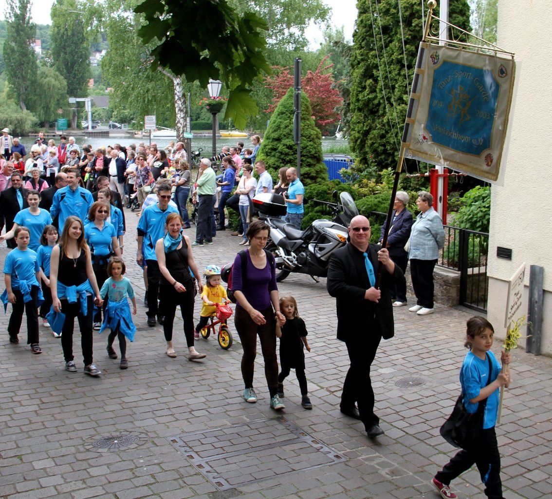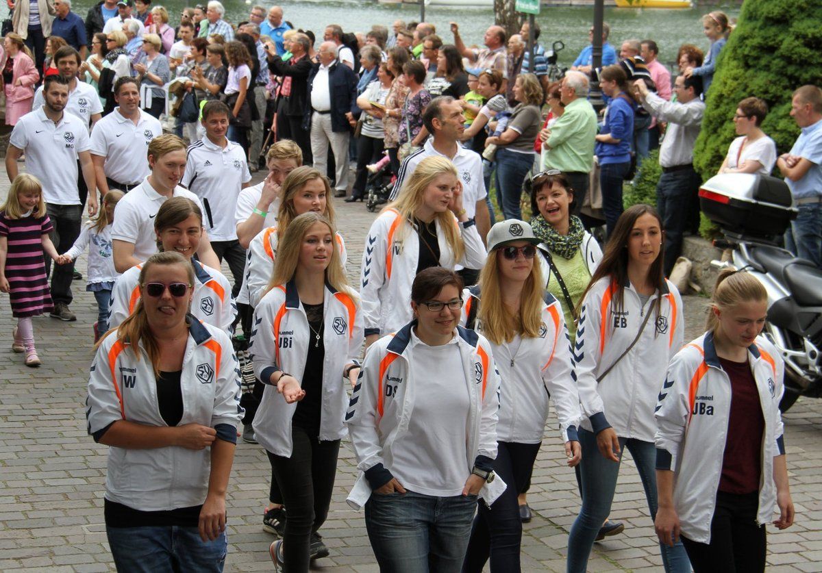 Spontan schloss sich dem Festzug auch eine Handballmannschaft aus Hessen, der ihr Pfingstausflug nach hier führte.