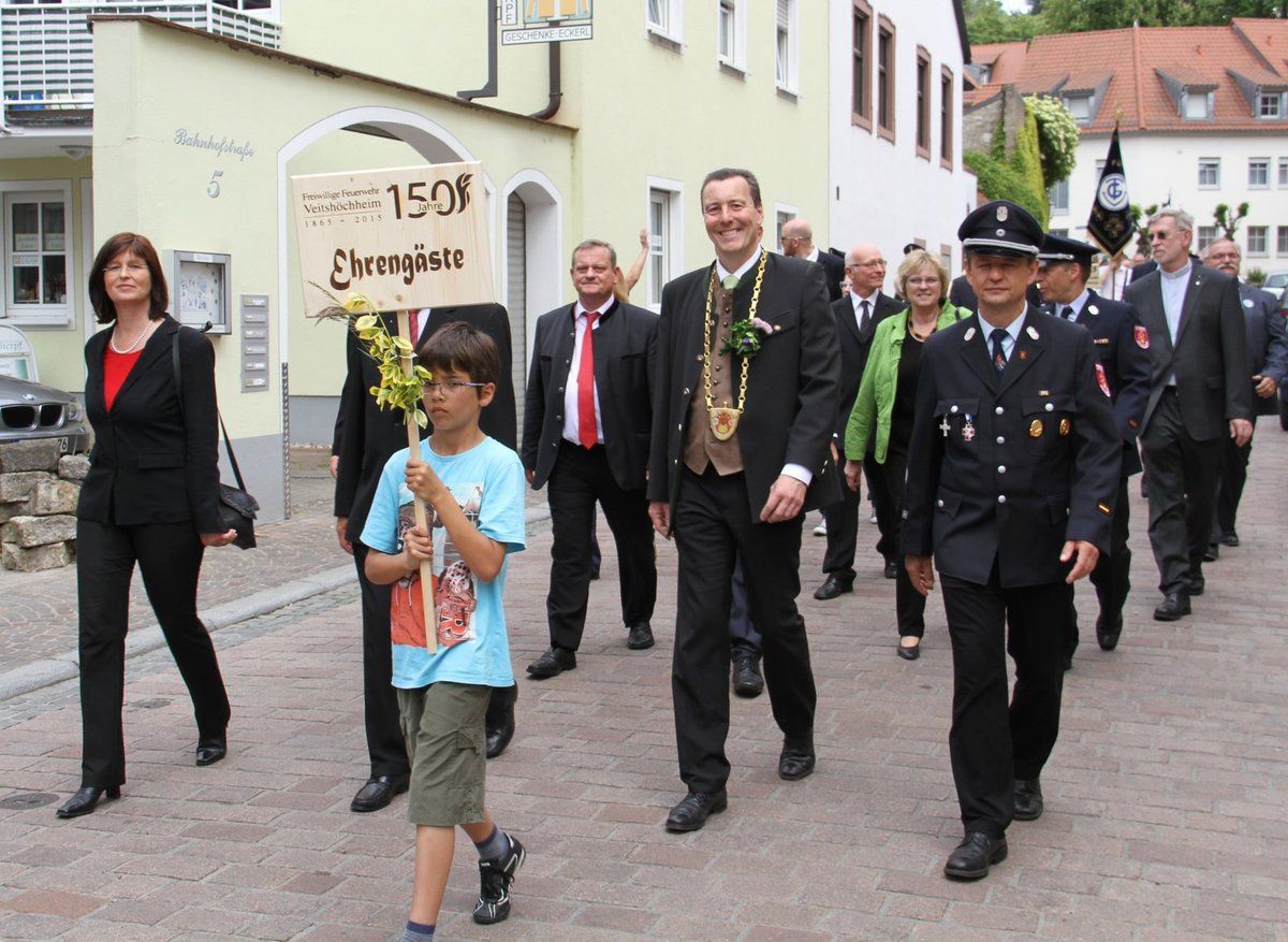 Am Sonntag-Nachmittag bewegte sich als Höhepunkt des 150jährigen Jubiläumfestes ein historischer Festzug mit rund 1000 Teilnehmern in 38 Gruppen, darunter 21 Feuerwehren, durch den Altort. Dem Jubelverein gaben dabei auch Regierungspräsident Dr. Paul Beinhofer als Schirmherr und die Landtagsabgeordneten Manfred Ländner und Volkmar Halbleib die Ehre.