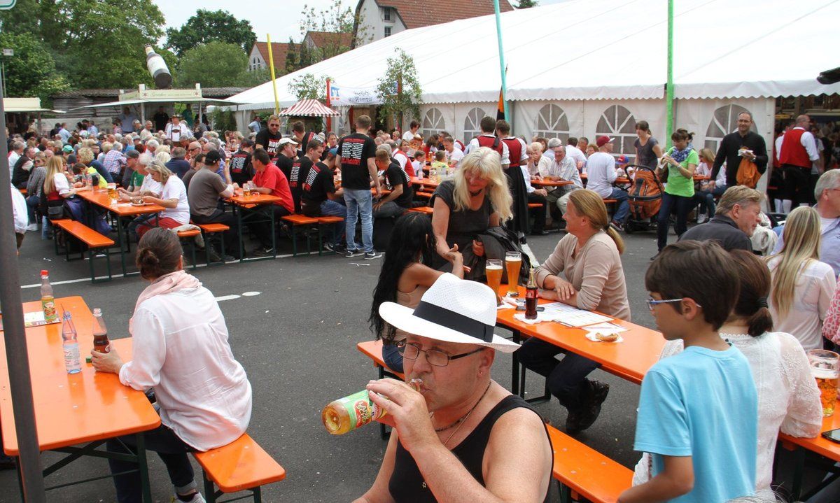 Bei idealem Festwetter floss anschließend im und vor dem Festzelt das Bier in Strömen, wiederum waren wie am Samstagabend alle 2.400 Plätze belegt, hatten die Helfer in den Ständen Schwerstarbeit zu leisten.