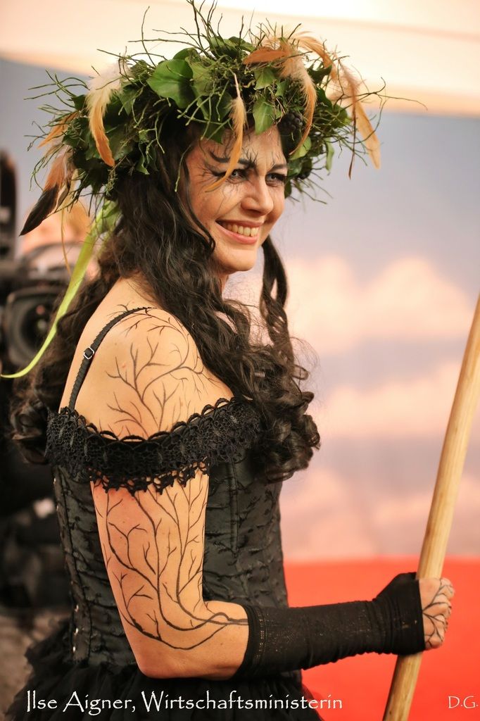 Wirtschaftsministerin Ilse Aigner (CSU) war mit furchterregenden Kontaktlinsen als böse Hexe mit Reisigbesen unterwegs - beim Ritt über den roten Teppich wirkte die Oberhexe mit "Gestrüpp auf dem Kopf" jedoch ausgesprochen heiter.