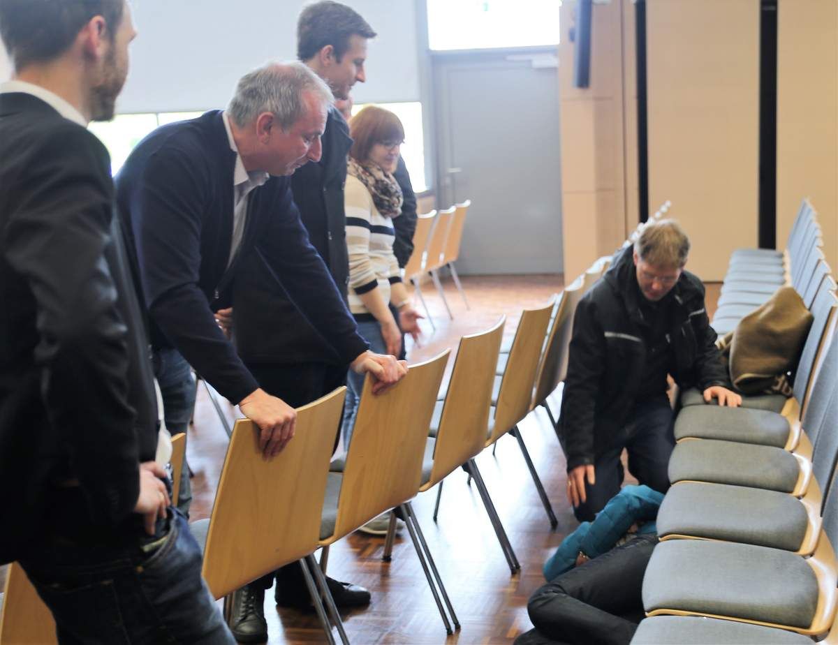 Da bei Veranstaltungen wie Prunksitzungen, Konzerte und Landespflege- oder Weinbautage das Hauspersonal diese Funktionen nicht alle übernehmen kann, ging es Betz bei der Schulung nun darum, die Teilnehmer für die Veranstaltungs- und Besuchersicherheit zu sensibilisieren , ihnen die Aufgabenverteilung und den koordinierten Ablauf im Falle eines Brandes wie das schnelle Verlassen des Gebäudes oder einer Evakuierung beispielsweise bei Fund eines verdächtigen Gegenstandes oder bei einer Bombendrohung zu vermitteln und mit ihnen die im Räumungskonzept vorgesehenen Sicherheitsmaßnahmen zu trainieren.