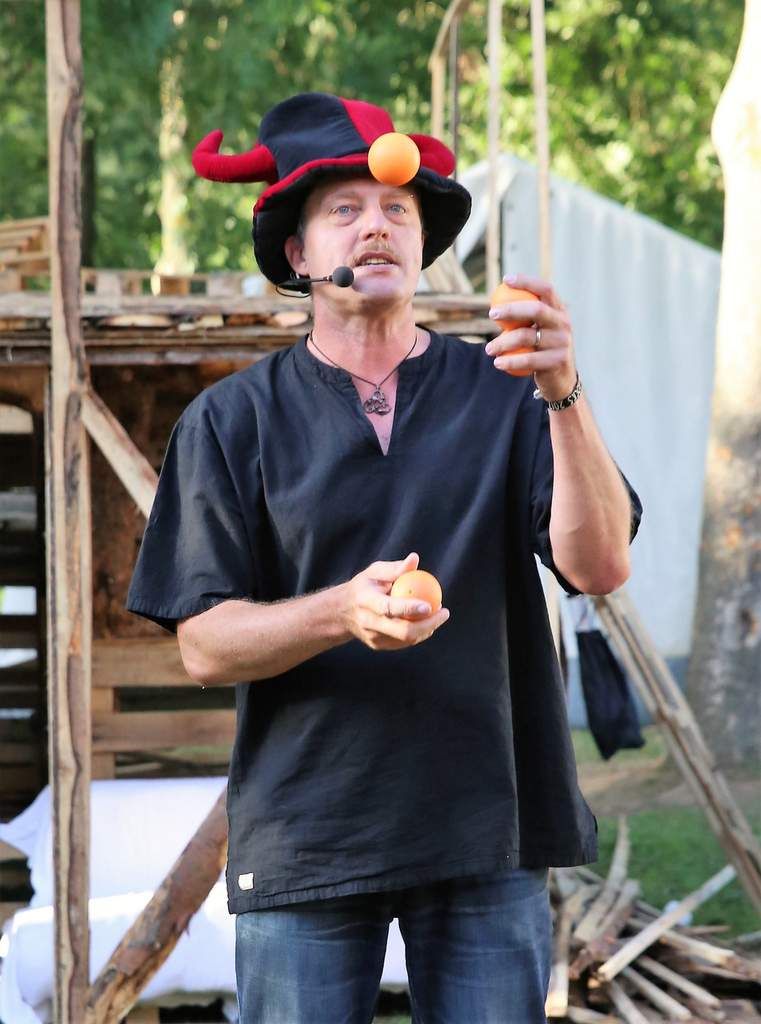 Der hiesige Gymnasiallehrer Harry Hirsch, der mit seiner "Drunter & Drüber" Schüler-Truppe erst vor einer Woche mit dem 6. Jonglagevarieté am Gymnasium für Furore gesorgt hatte, führte unter der Woche in zwei Workshops insgesamt 55 Kindern in die Geheimnisse der Jonglierkunst mit Bällen ein. Über die Hälfte der Kids, vor allem die Grundschüler, betraten hier Neuland. Beim Grillabend konnten dann die, die den Einstieg in die Drei-Bälle-Jonglage geschafft hatten, voller Stolz ihr Können den staunenden Eltern vorführen.